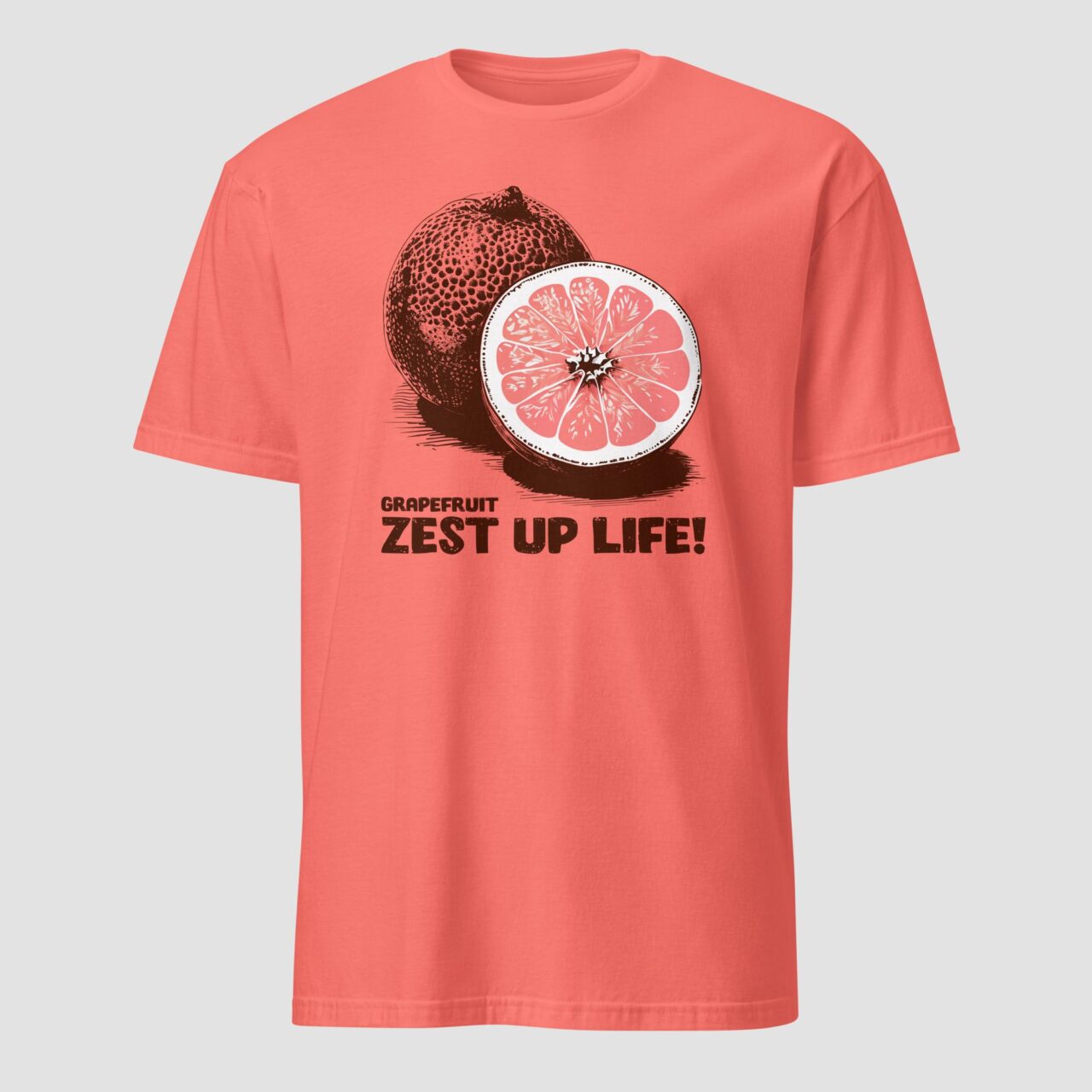Wake up your wardrobe with a burst of citrus energy! This vibrant grapefruit ‘Zest Up Life!’ t-shirt is a daily dose of sunshine and positivity. Super soft and perfect for bringing fresh, optimistic vibes to your casual style. A feel-good essential for summer and beyond.