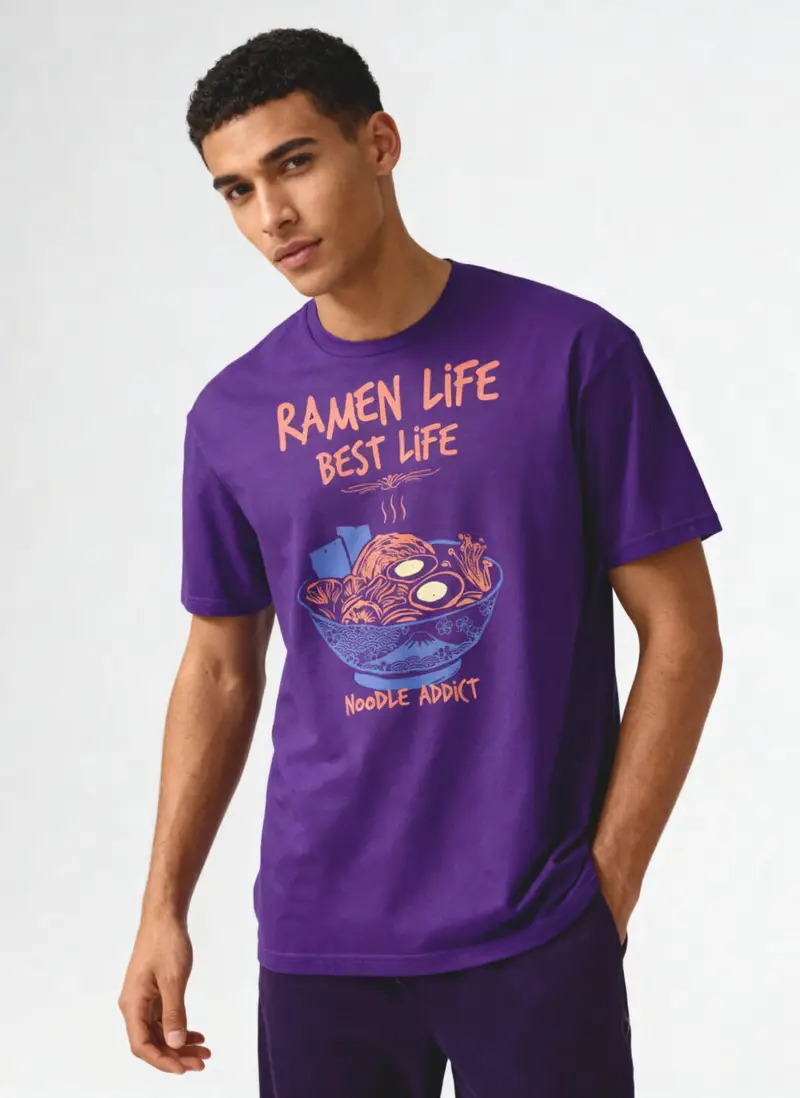The “Ramen Life, Best Life” design celebrates noodle obsession in a fun, relatable way. Printed using high-quality techniques, the artwork remains vibrant and sharp over time, resisting fading, cracking and peeling. Whether you’re heading out for a casual meal, relaxing at home or styling a laid-back streetwear look, this t-shirt adds personality without trying too hard.