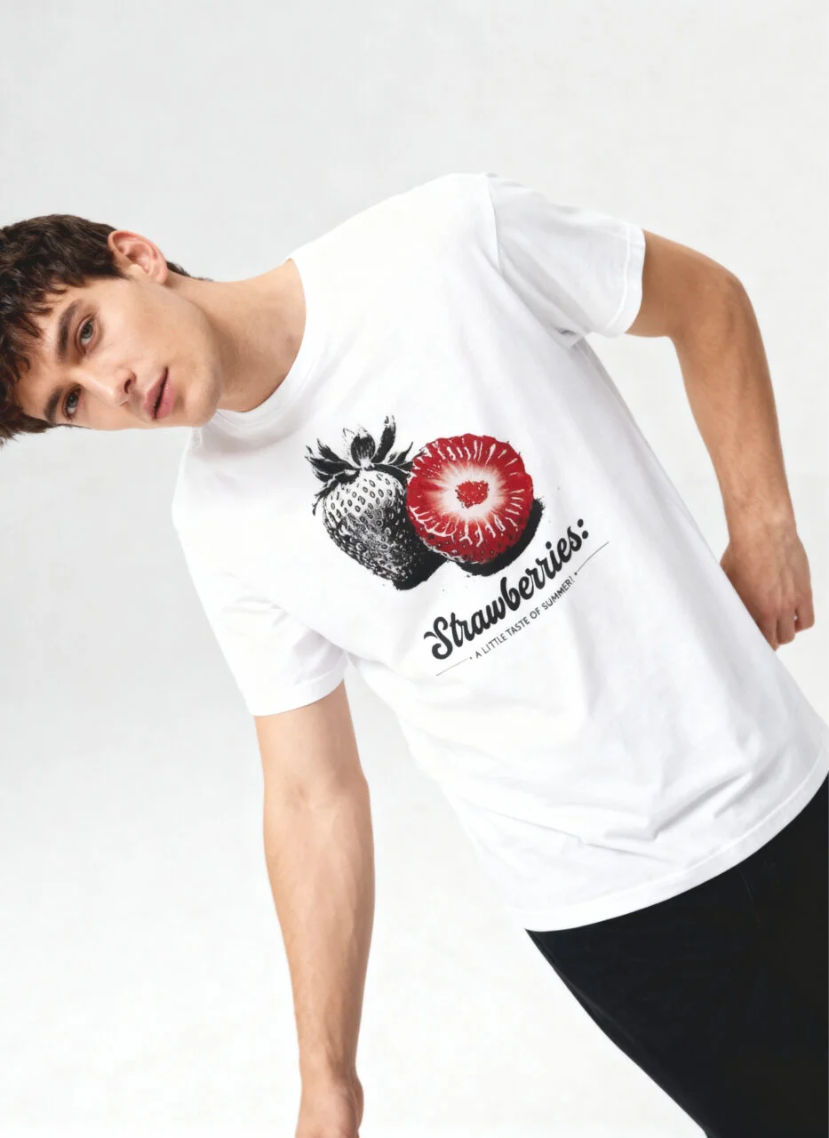 The strawberries artwork is printed using high-quality printing technology to ensure crisp detail and long-term vibrancy. The print resists fading, cracking and peeling, helping the design stay fresh and bold after repeated washes. Whether worn casually at home or styled for a day out, the artwork remains visually appealing over time.